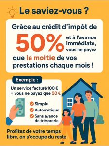Domicile Clean Poitiers vous informe que grâce au crédit d'impôt de 50 % et à l'avance immédiate,
